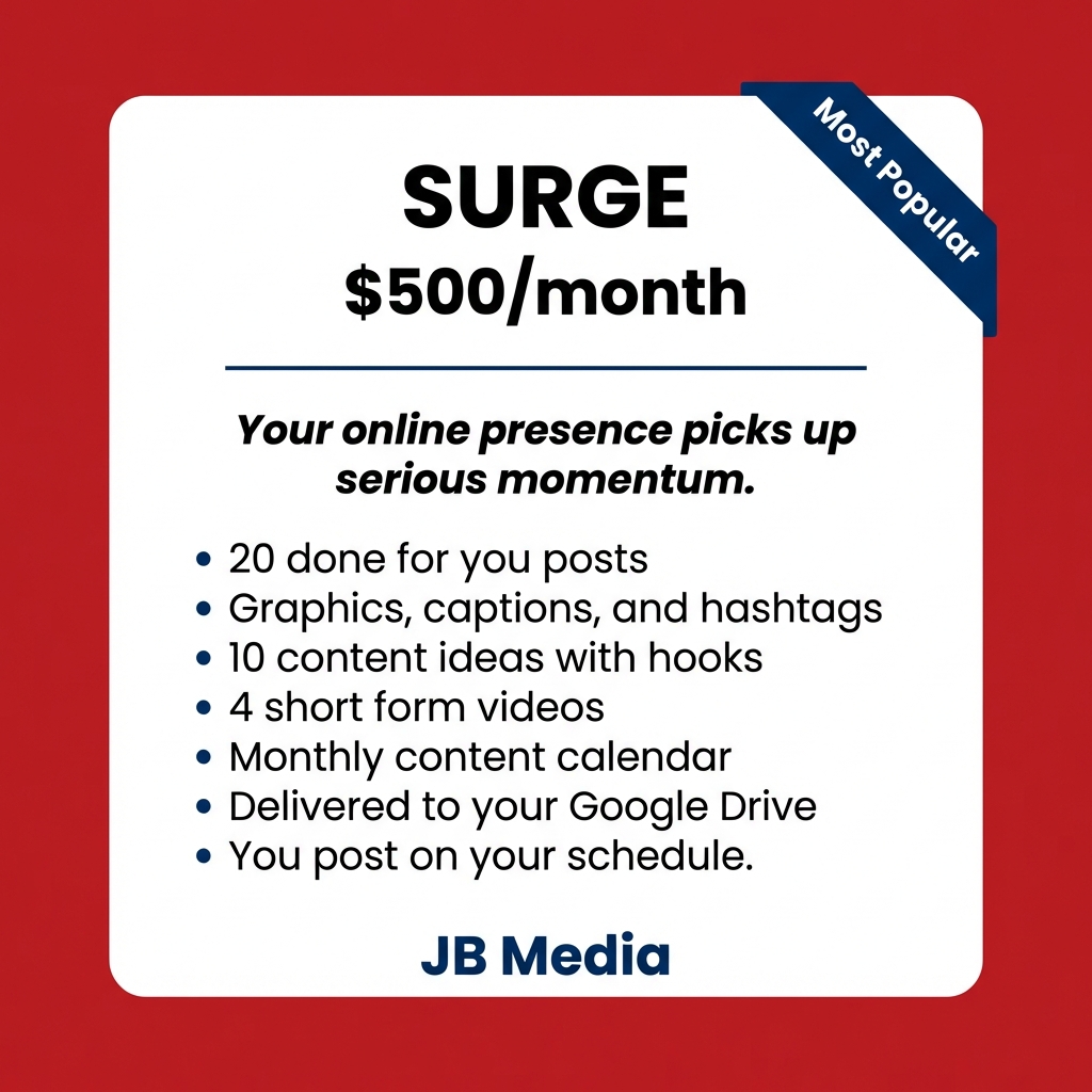 JB Media fixes that. We build and manage your entire social media presence so you never have to think about it. No learning new apps. No trying to figure out what to post. No spending your nights staring at a phone screen when you should be resting up for tomorrow's job.